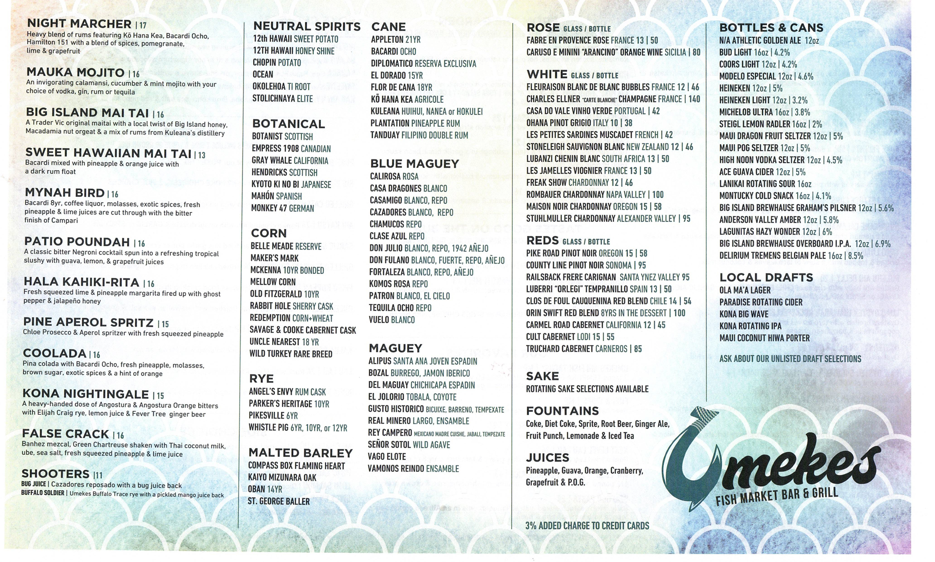 Heavy blend of rums featuring Kō Hana Kea, Bacardi Ocho, Hamilton 151 with a blend of spices, pomegranate, lime & grapefruit